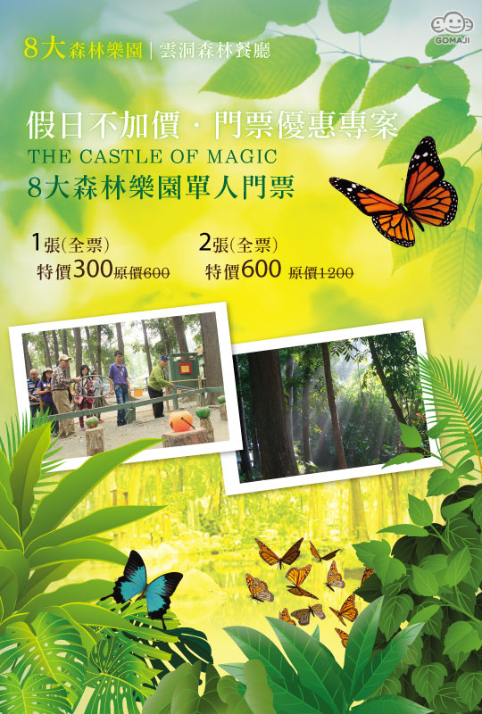 只要300元起,即可享有【8大森林魔法樂園】假日不加價.門票優惠專案〈含單人樂園門票(全票)A.一張/B.二張〉